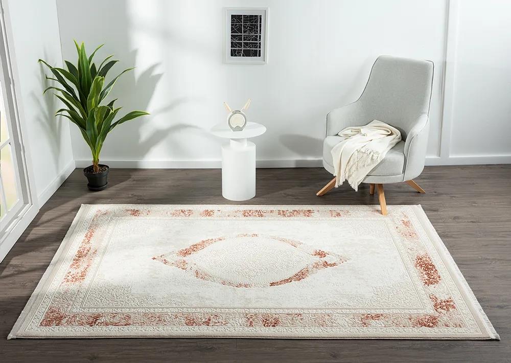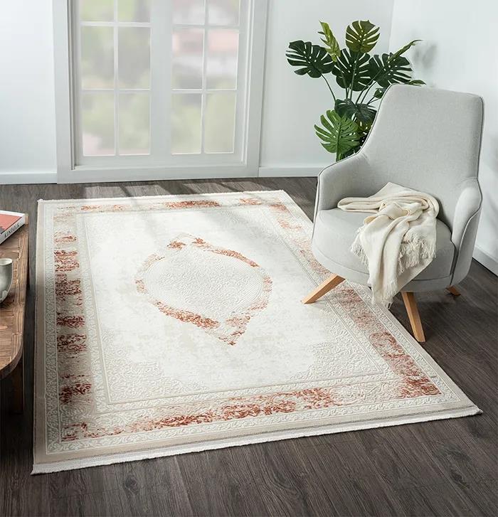 Karmen Halı Dark Dk011k Bej Halı Kiremit Detaylı Kenar Çerçeveli Göbekli Akrilik Tozuaz Modern Salon Halısı