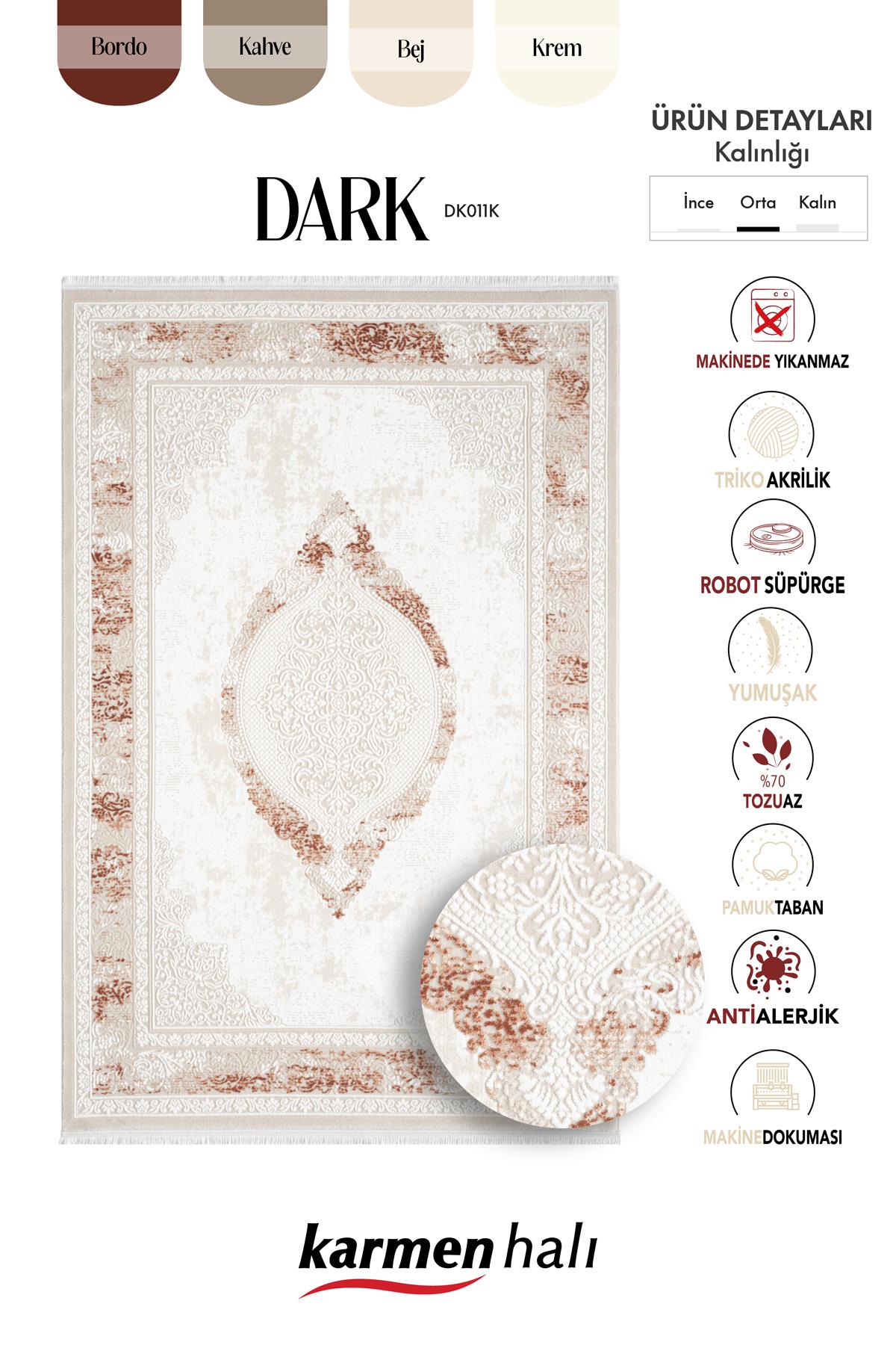 Karmen Halı Dark Dk011k, zarif bej zemin üzerine kiremit detayları ve kenar çerçevesiyle modern salonlar için ideal bir seçenek sunar. Göbekli desen yapısı ve akrilik malzemenin yumuşak dokusuyla konfor ve şıklığı bir arada sunar.
