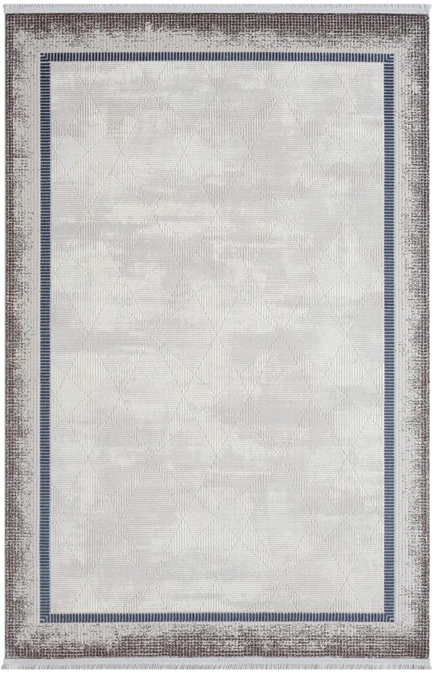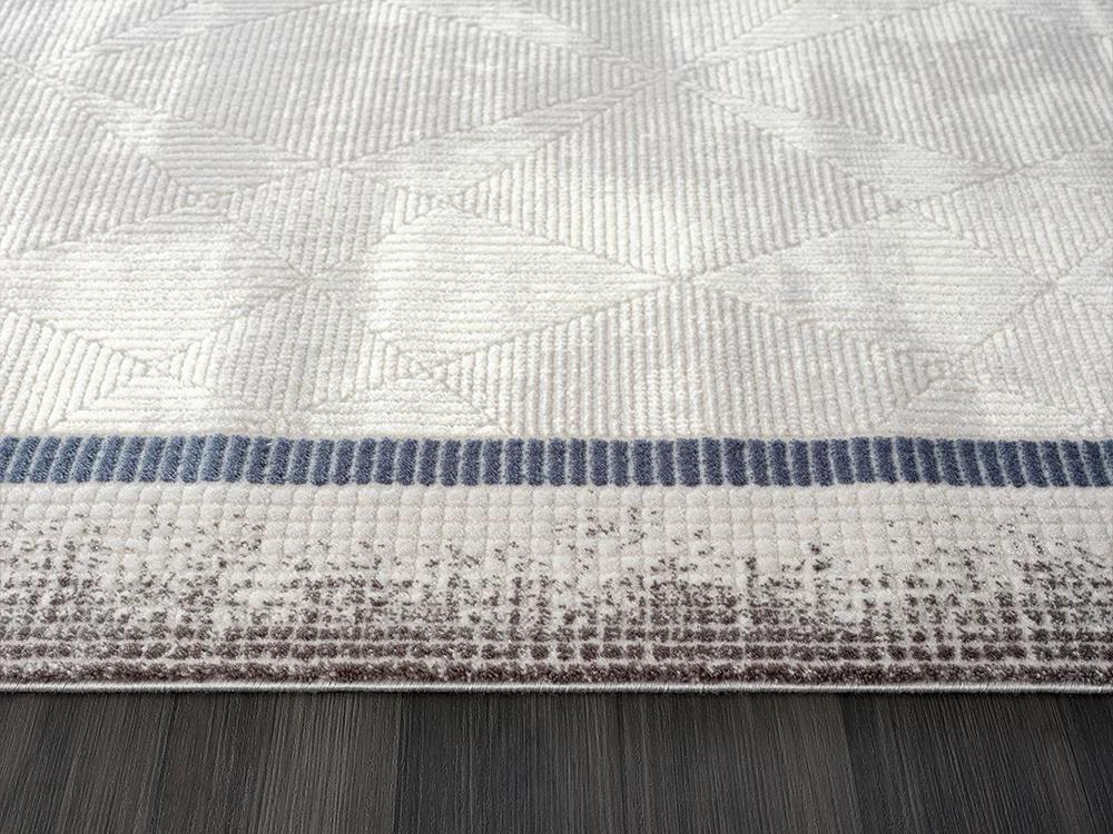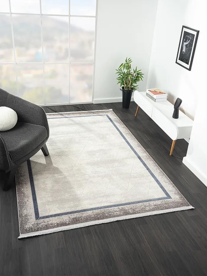 Karmen Halı Dark Dk012m Gri Halı Lacivert Kenar Çerçeveli Geometrik Detaylı Akrilik Tozuaz Modern Salon Halısı