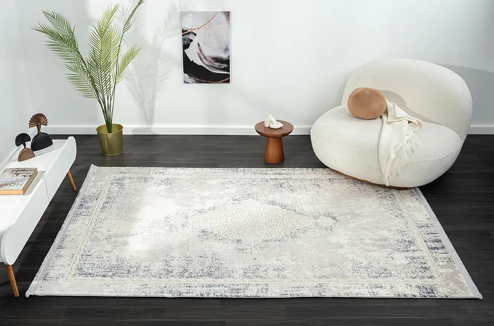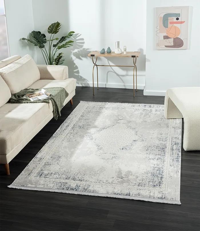 Karmen Halı Dark Dk013m Gri Halı Mavi Eskitme Detaylı Göbekli Akrilik Tozuaz Modern Salon Halısı Yatak Odası