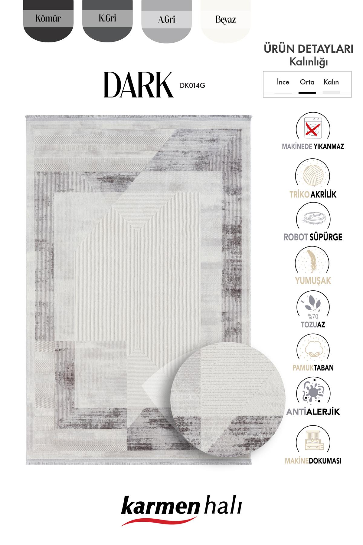Karmen Halı Dark Dk014g Gri Halı Antrasit Geometrik Detaylı Akrilik Tozuaz Modern Salon Halısı Yatak Odası