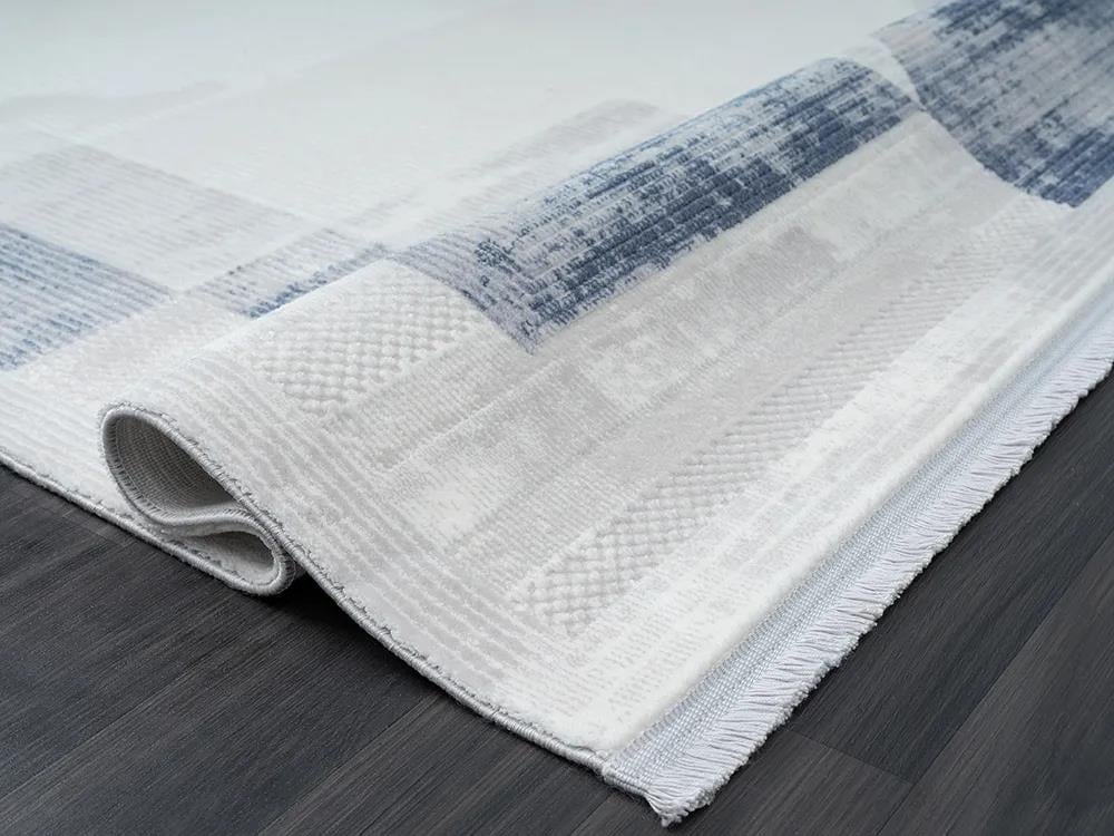 Karmen Halı Dark Dk014m Gri Halı Mavi Geometrik Detaylı Akrilik Tozuaz Salon Halısı Yatak Odası Halısı Koridor