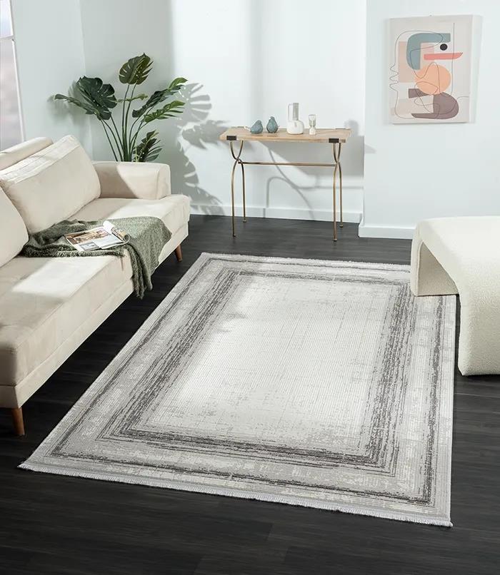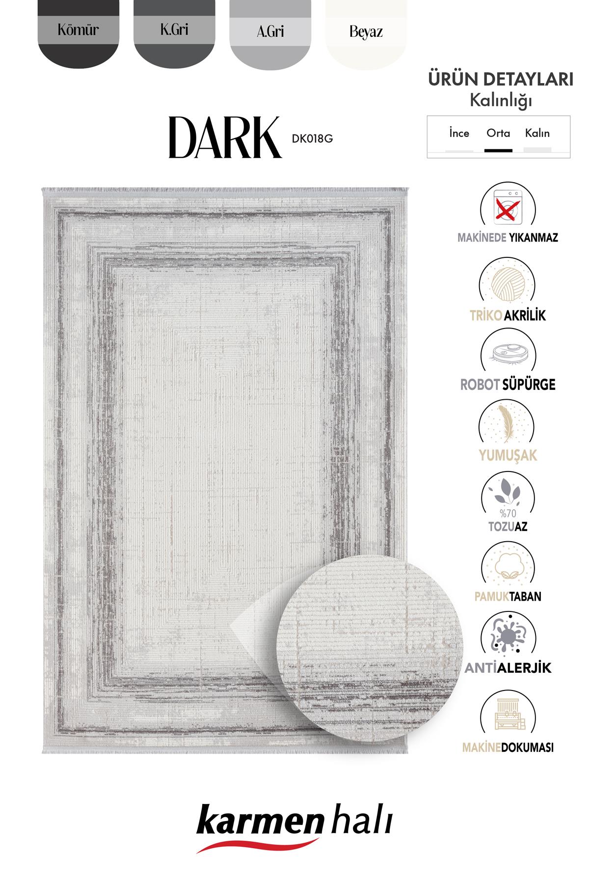 Karmen Halı Dark Dk018g Gri Halı Antrasit Detaylı Akrilik Tozuaz Modern Salon Halısı Yatak Odası Halısı Koridor
