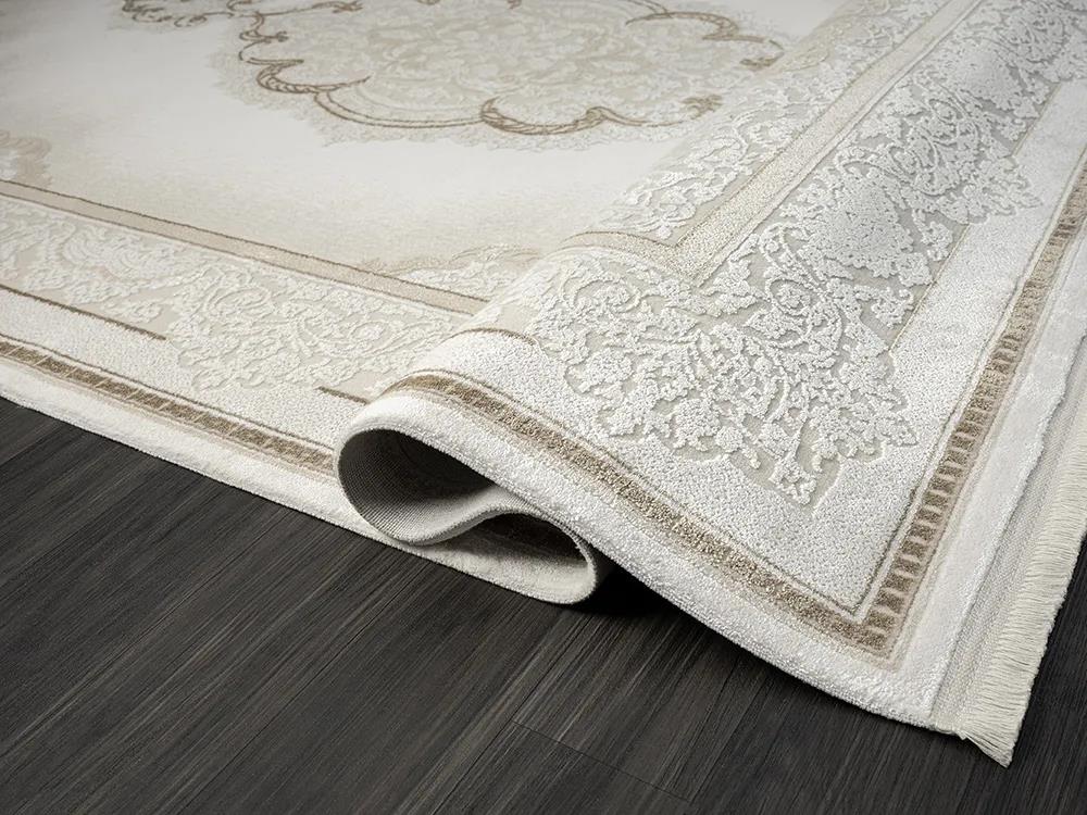 Karmen Halı Elegance Eg001a Beyaz Halı Gold Sedef Detaylı Göbekli Modern Viskon Doğal İplik Bambu Halı