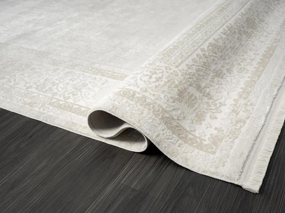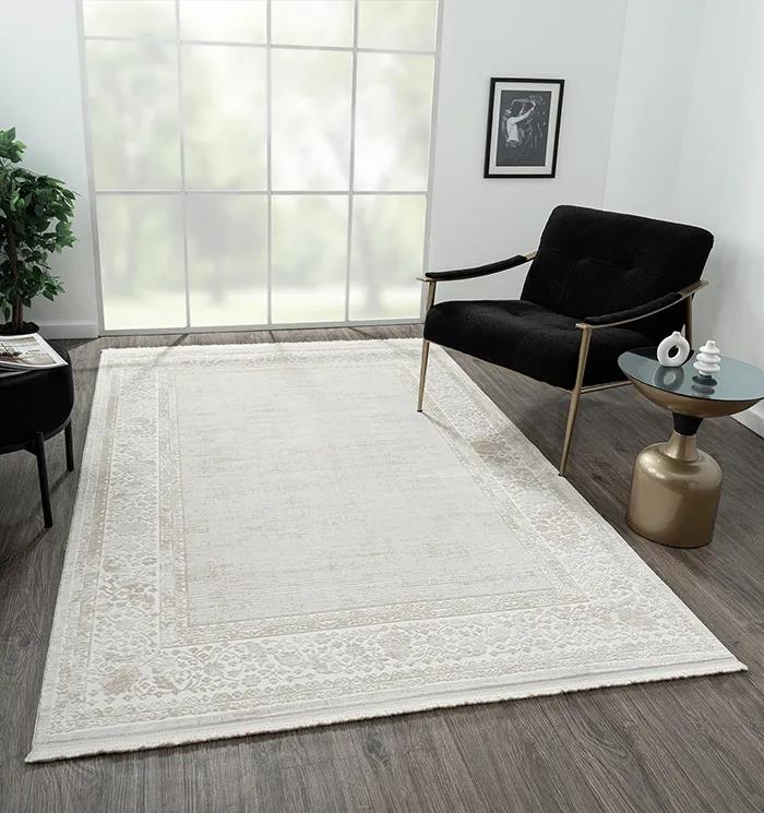 Karmen Halı Elegance Eg002a Gri Halı Bej Detaylı Çerçeveli Modern Viskon Doğal İplik Bambu Halı