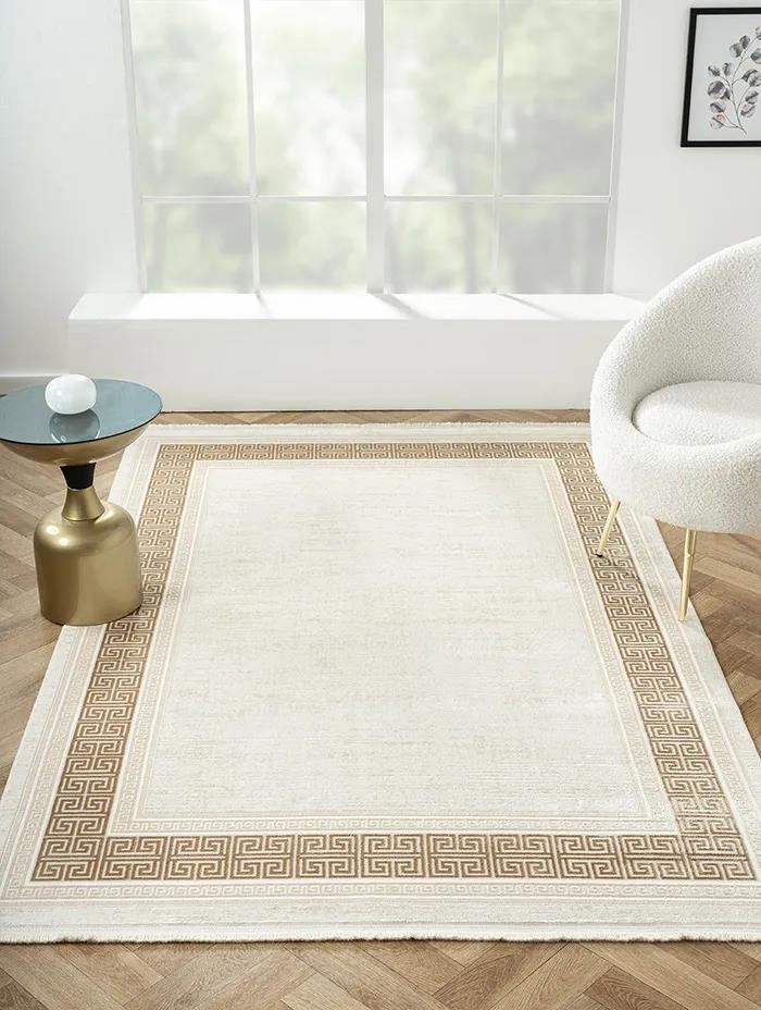 Karmen Halı Elegance Eg009a Bej Halı Gold Çerçeveli Modern Viskon Doğal İplik Bambu Halı