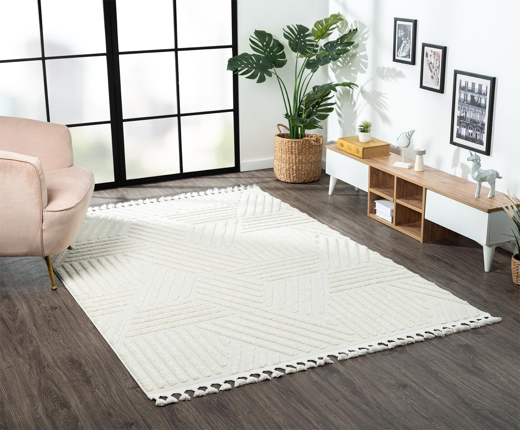 Karmen Halı Loop Lp001a, sade ve zarif beyaz rengi ile her türlü dekorasyona uyum sağlayacak şıklıkta bir halıdır. Sisal bukle dokusuyla modern bir dokunuş sunar. Tozsuz ve antialerjik özellikleri sayesinde sağlıklı bir yaşam alanı sunarken, dayanıklı yapısıyla uzun ömürlü kullanım sağlar. Salon, yatak odası ve koridor gibi yoğun kullanılan alanlarda rahatlıkla kullanılabilir.