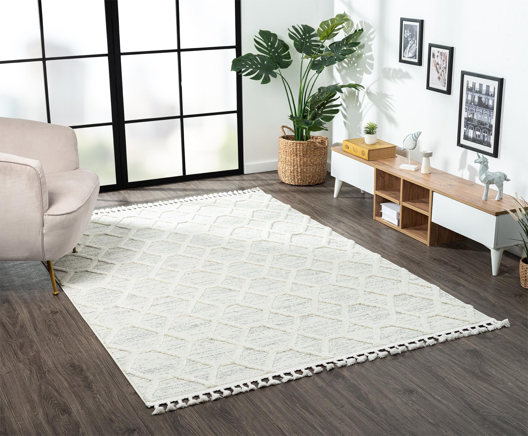 Karmen Halı Loop Lp004a Beyaz Halı Dekoratif Sisal Bukle Tozsuz Antialerjik Salon Halısı Yatak Odası Koridor