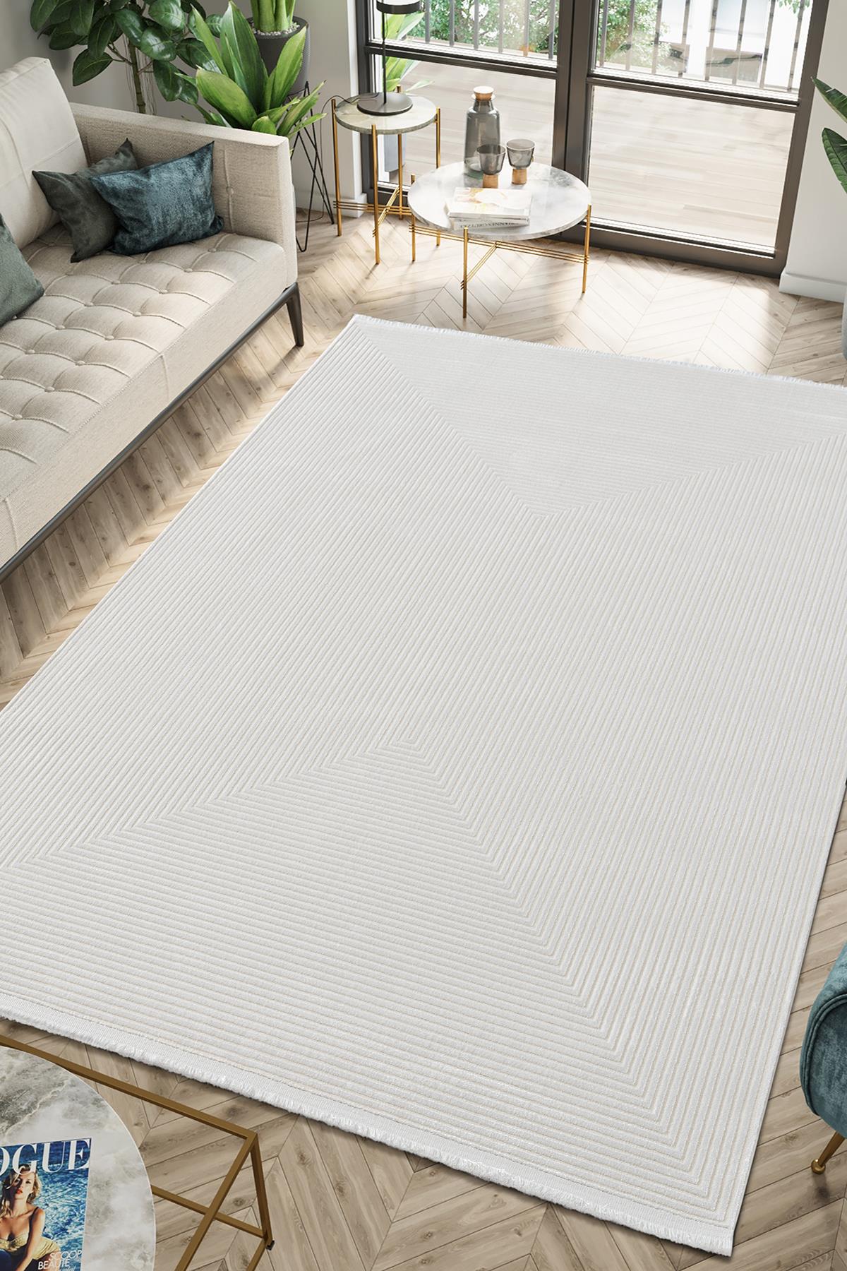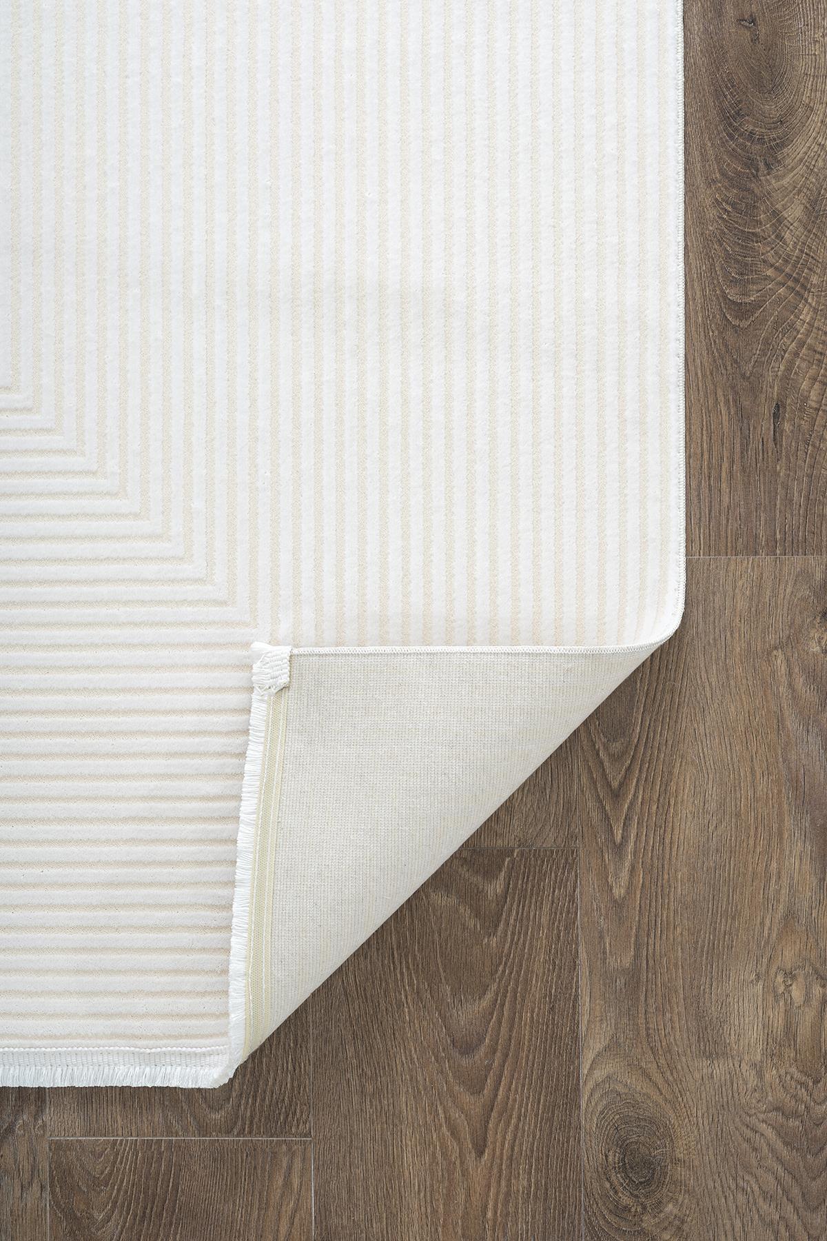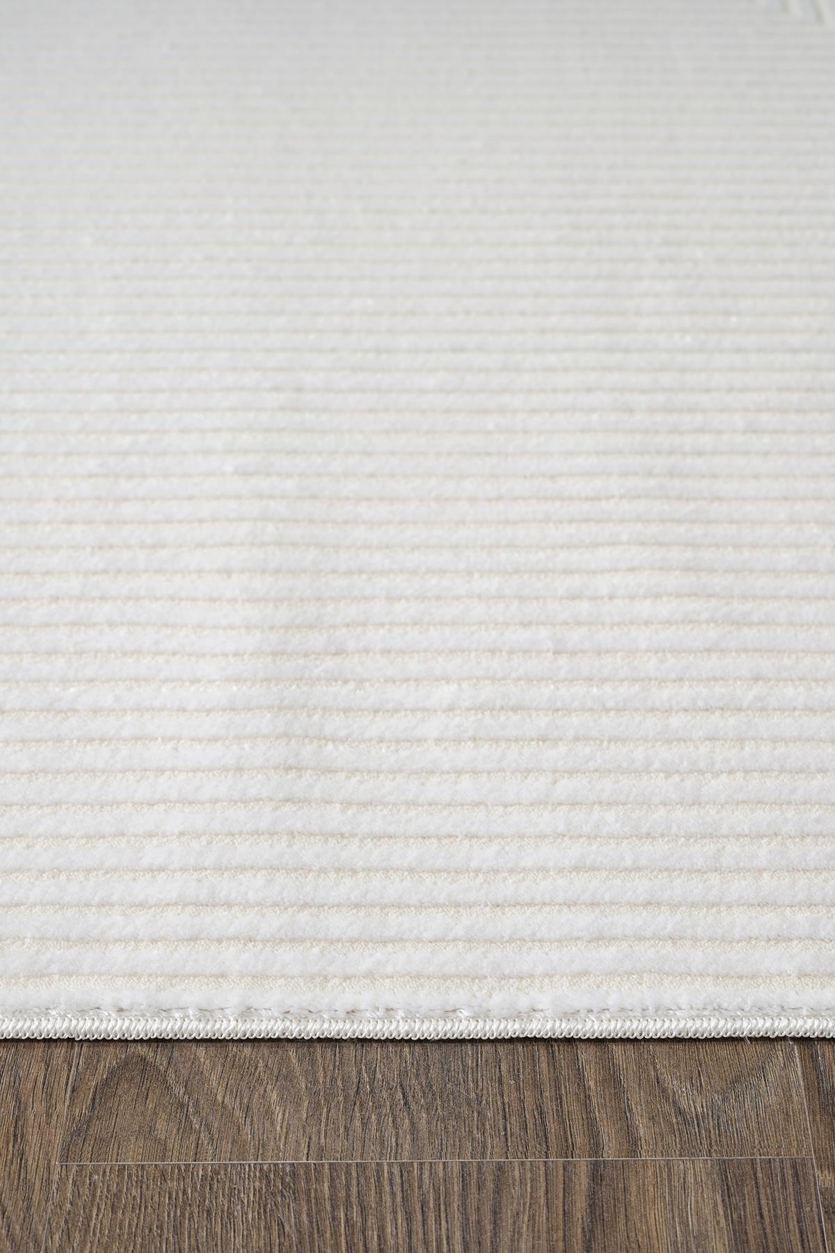Karmen Halı Merit MR009A, sade ve şık krem rengiyle modern çizgilere sahip geometrik detayları bir araya getiriyor. Salonunuza veya oturma odanıza minimal ve zarif bir görünüm kazandırırken aynı zamanda konforlu bir zemin sağlar.