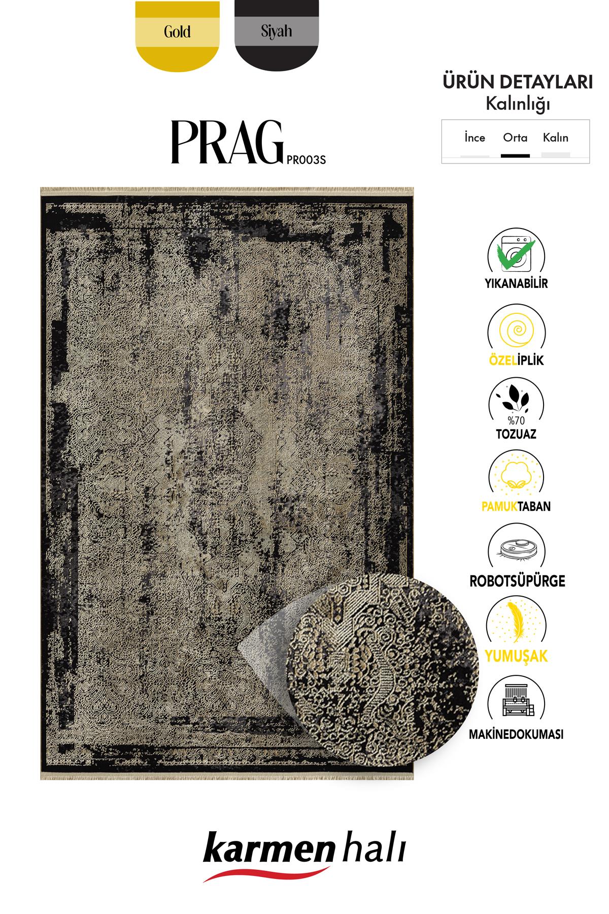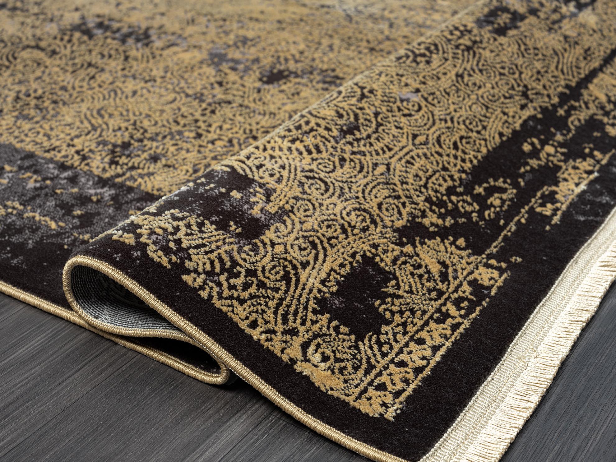 Siyahın asaleti ve gold detayların göz alıcı zarafeti ile evinize modern ve lüks bir dokunuş katmak için Karmen Halı Prag Pr003s mükemmel bir seçim!