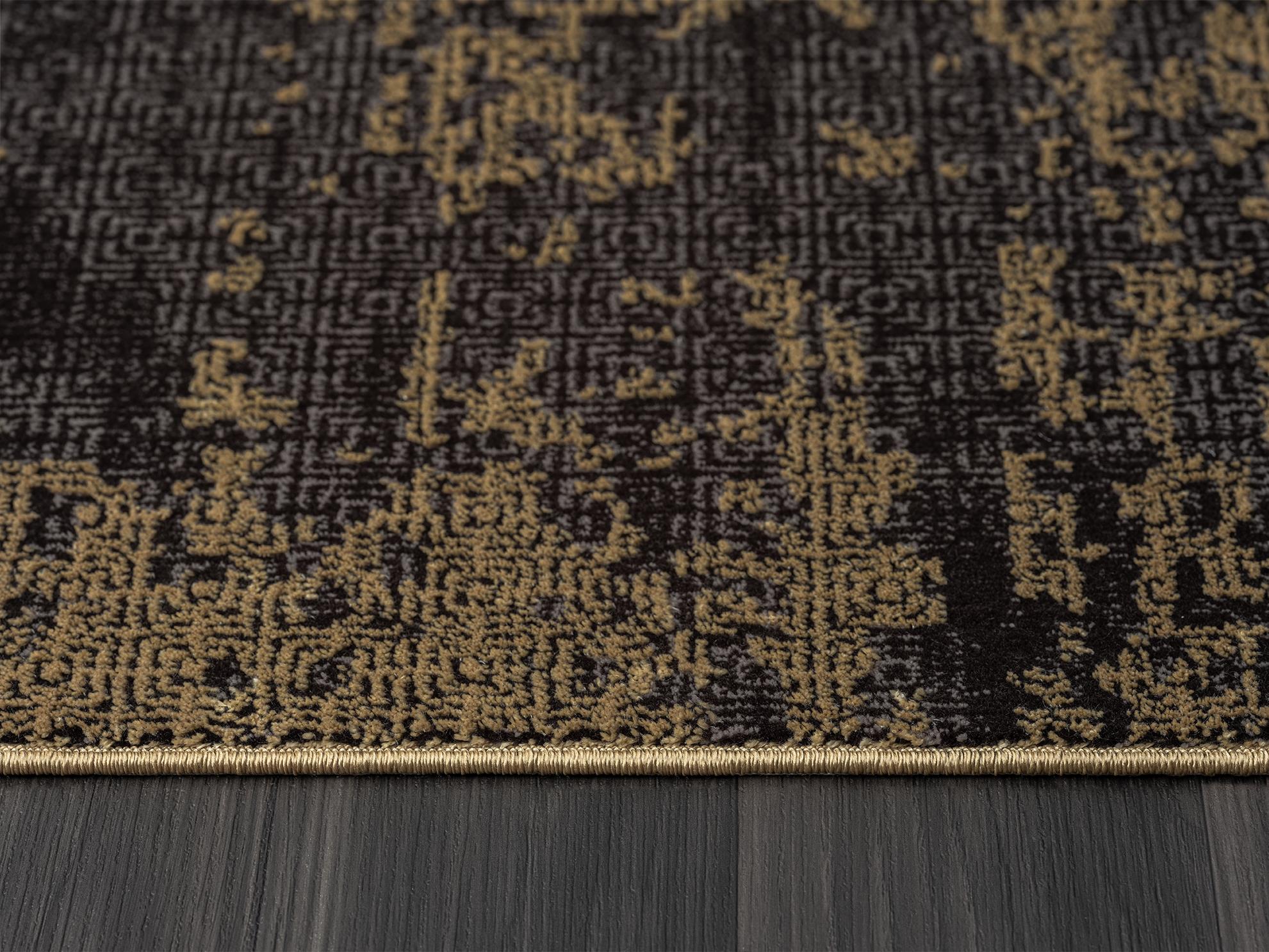 Karmen Halı Prag Pr005s Siyah Halı Gold Detaylı Özel İplik Parlak İnce Modern Eskitme Salon Halısı Yatak Odası