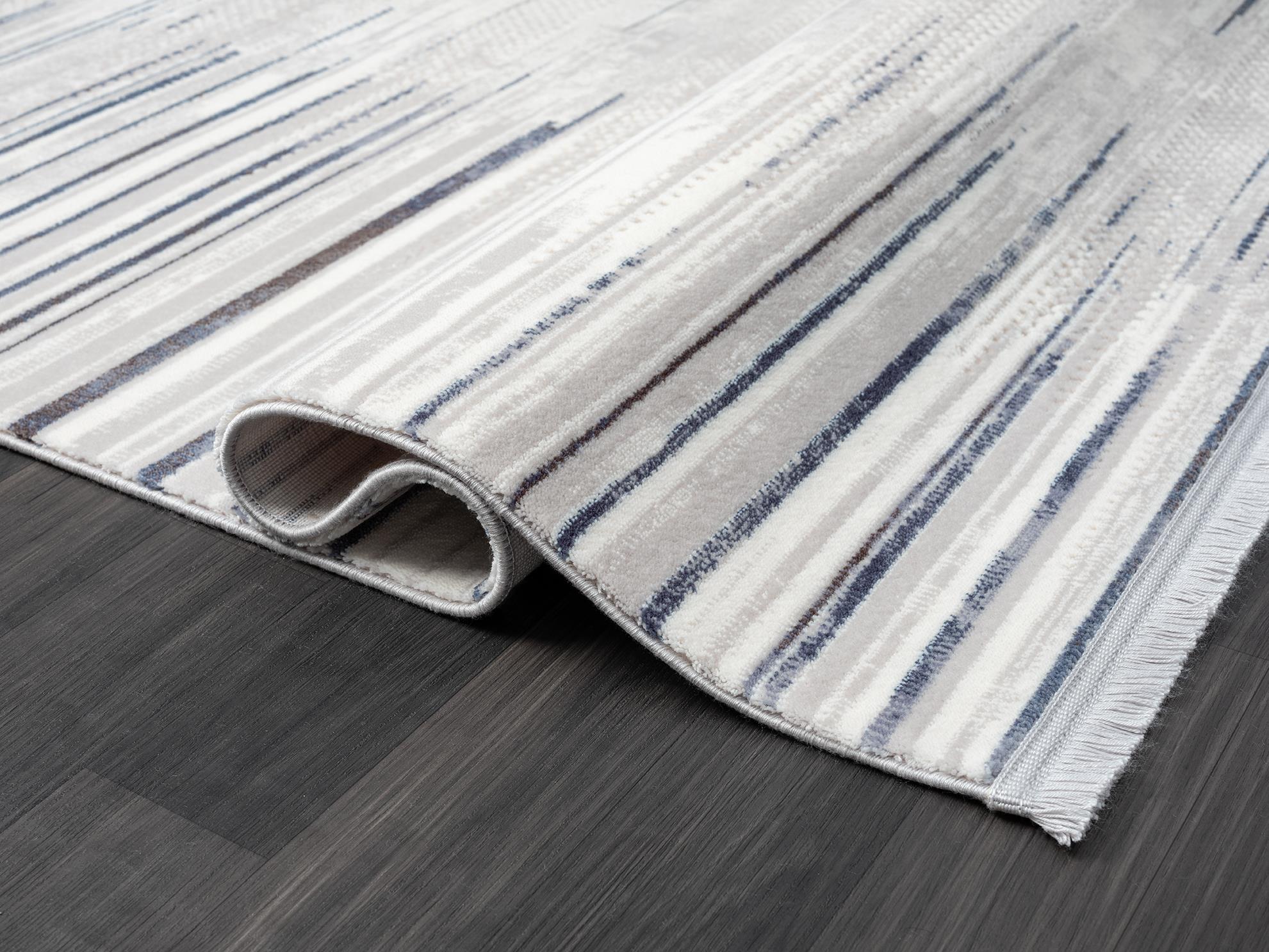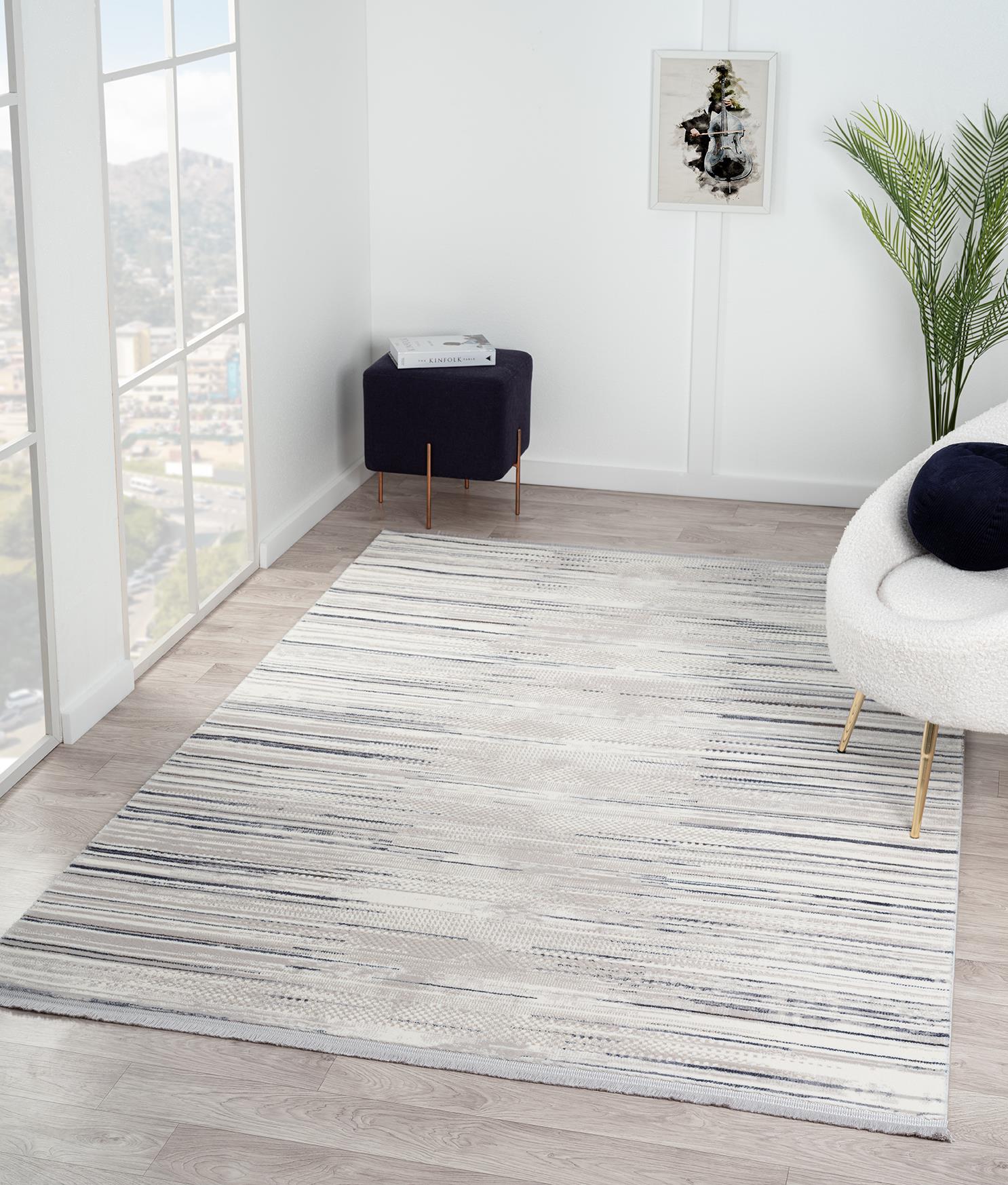 Karmen Halı Tokyo Tk002m Gri Halı Lacivert Detaylı Modern Akrilik Halı Kaymaz Taban Tozuaz Salon Halısı Yatak Odası
