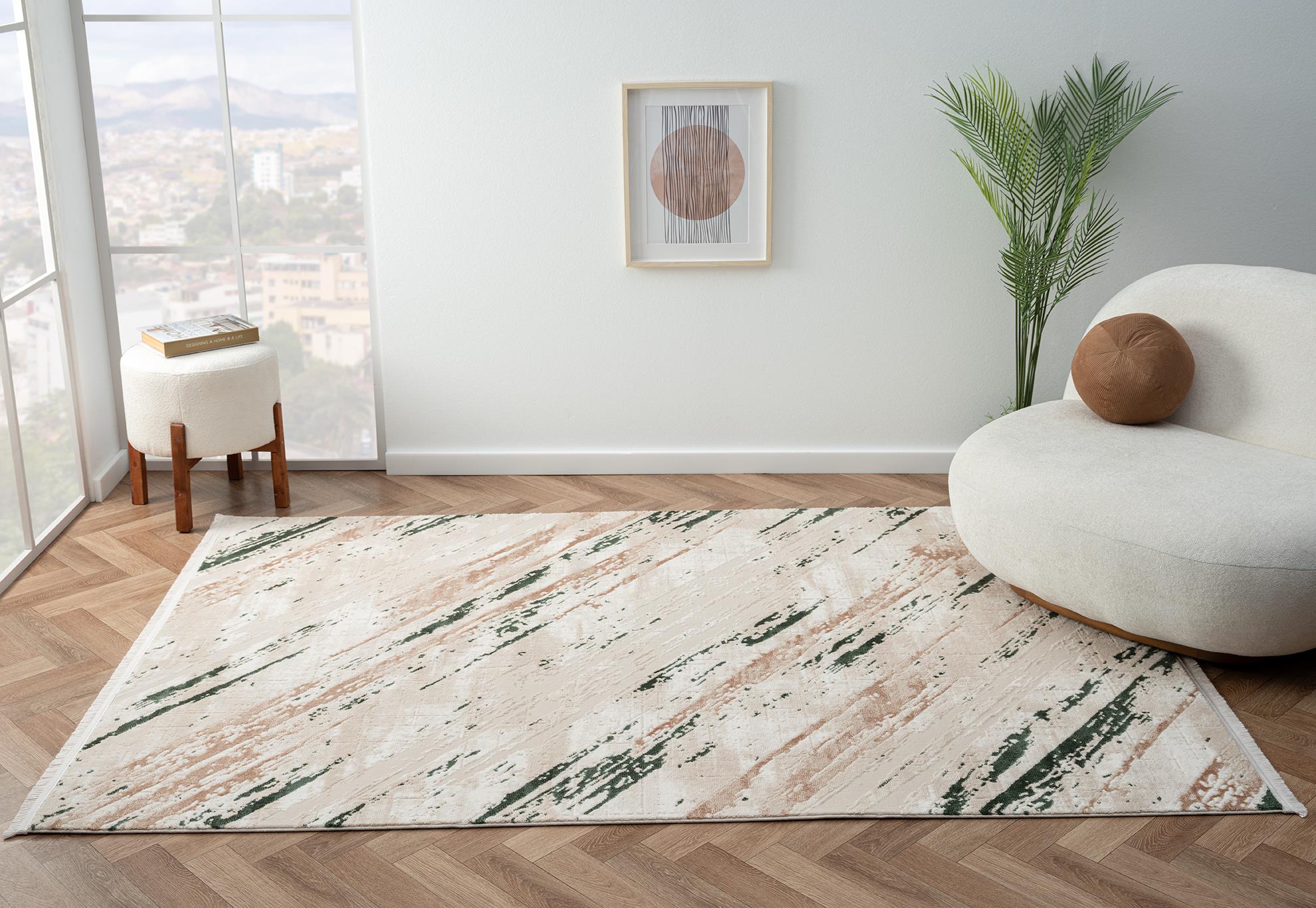 Karmen Halı Tokyo Tk003y Bej Halı Yeşil Detaylı Modern Akrilik Halı Kaymaz Taban Tozuaz Salon Halısı Koridor