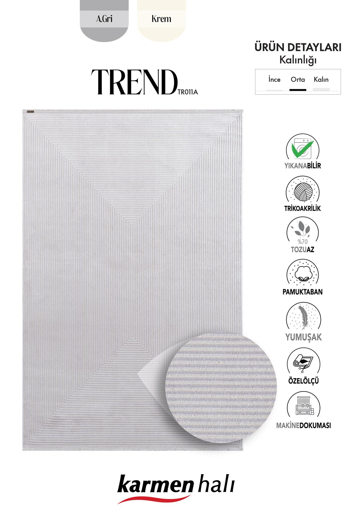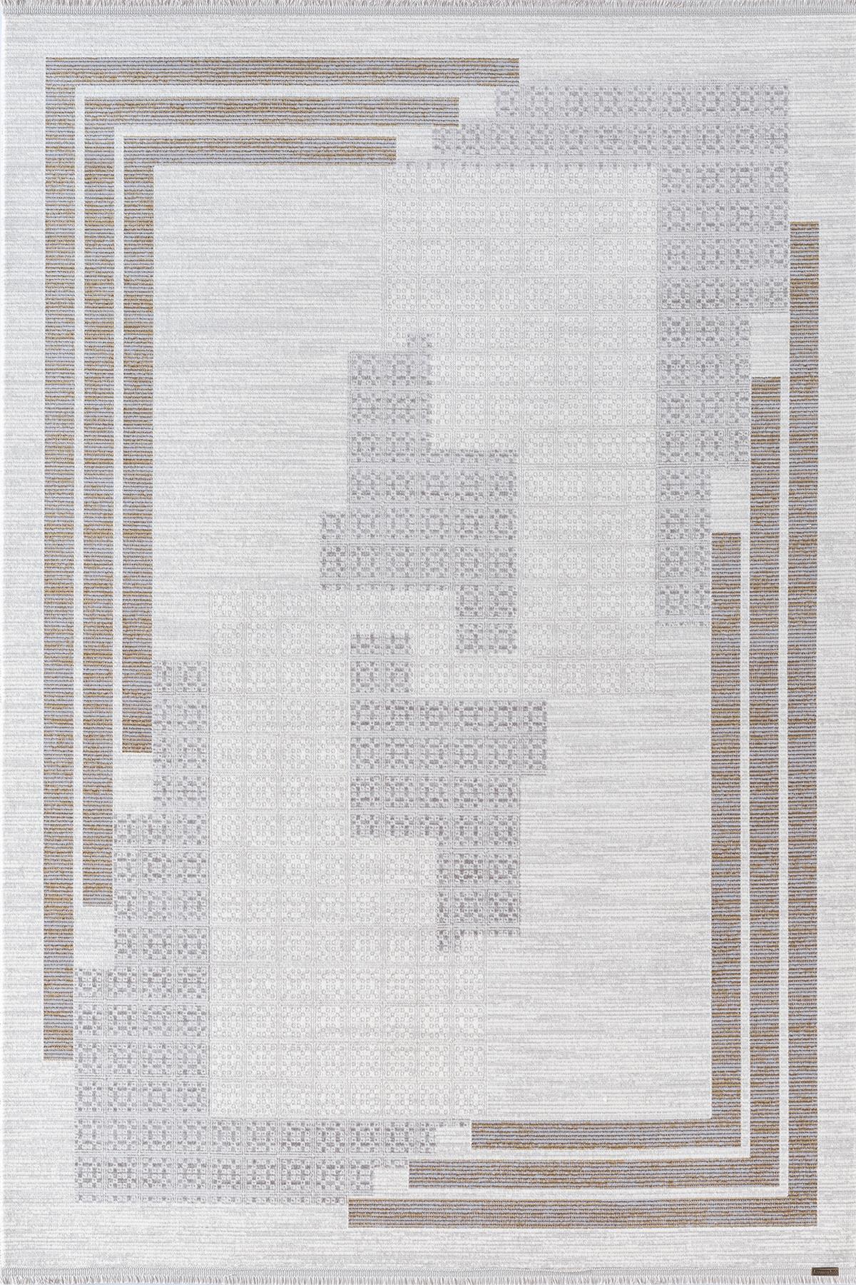 Karmen Halı Trend TR010A Krem Halı Vizon ve Gri Detaylı Geometrik Desenli Akrilik Yumuşak Salon Halısı