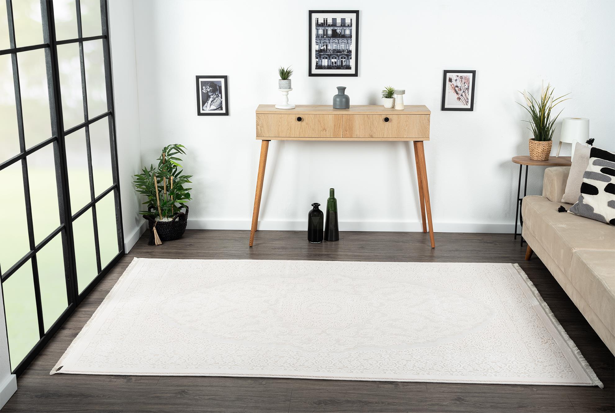 Bu şık ve zarif halı ile yaşam alanlarınıza hem modern hem de klasik bir dokunuş kazandırın!