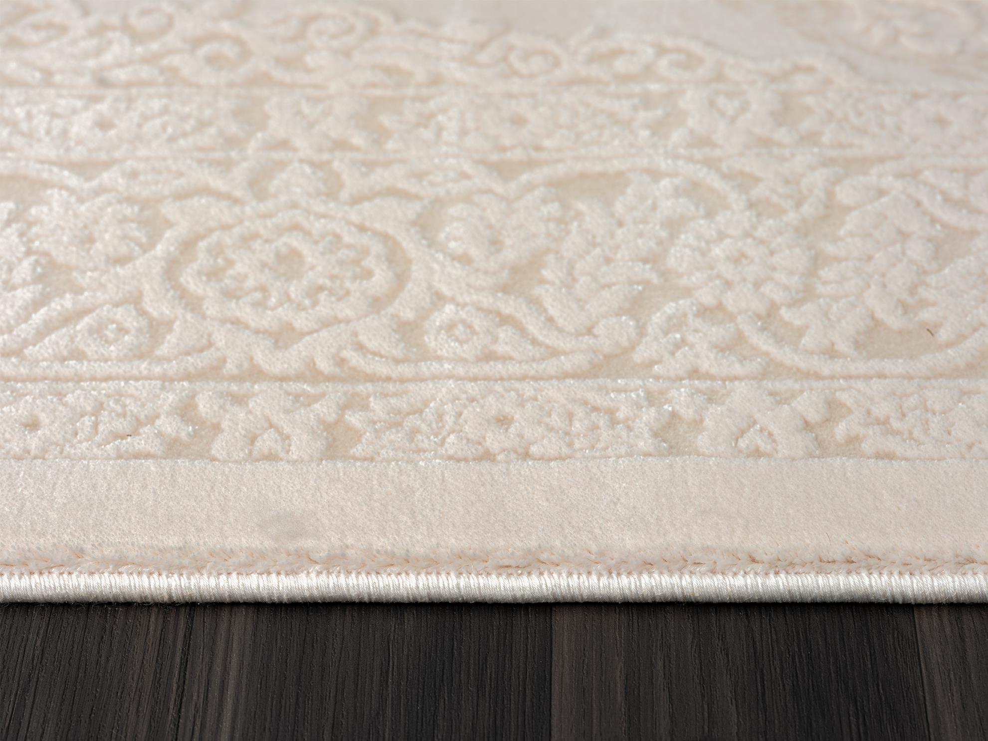Karmen Halı Truva 8340 Krem Halı Kenar Çerçeveli Göbekli Kalın Akrilik Tozuaz Modern Klasik Salon Halısı Koridor