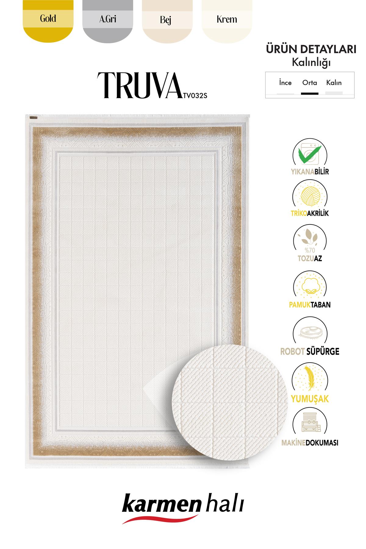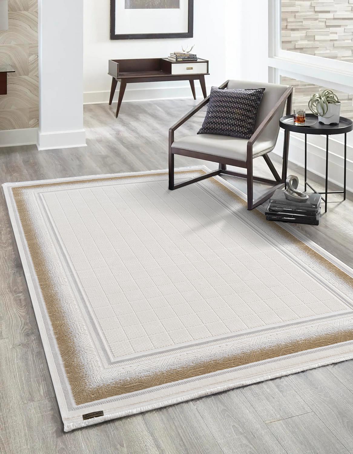Karmen Halı Truva Tv032s Krem Rengi Halı – Gold Geometrik Detaylı Akrilik Yumuşak Salon Halısı