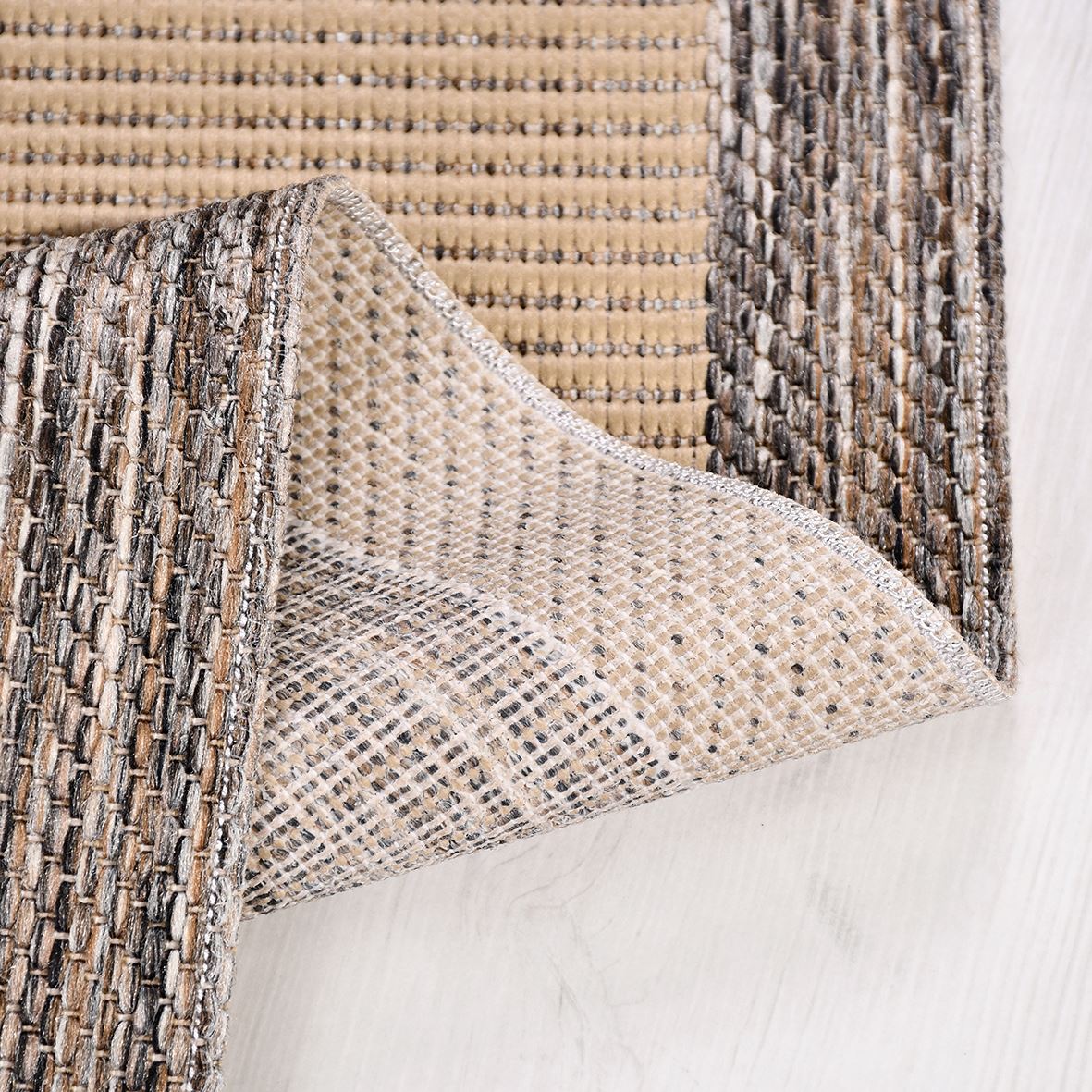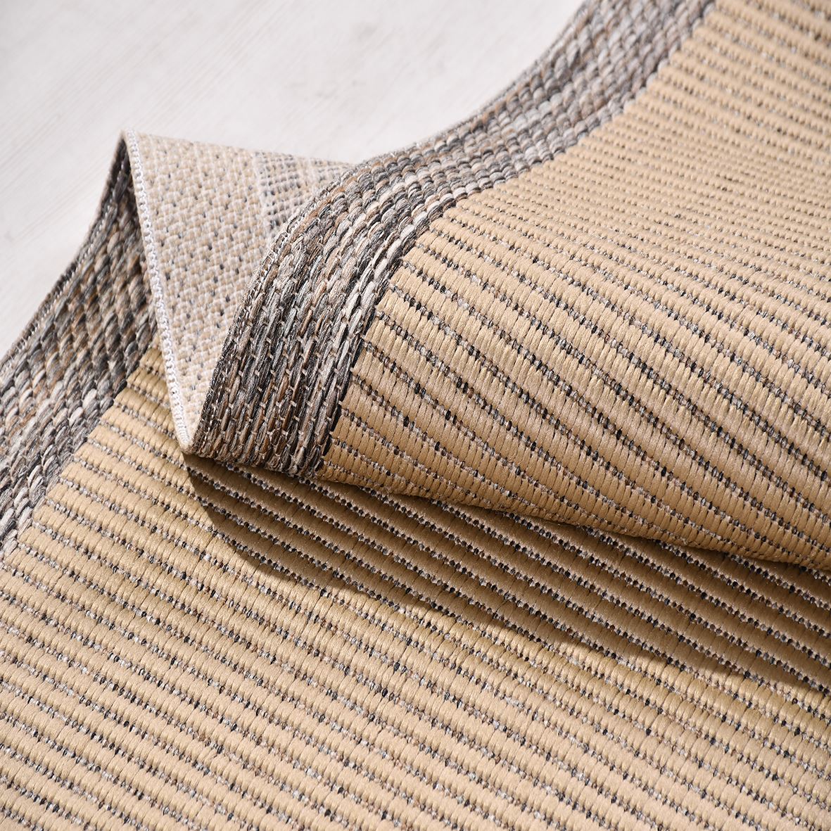 - kaymaz taban özellikli, iç ve dış mekanlar da kullanılabilir bordürlü, modern sisal kilim.